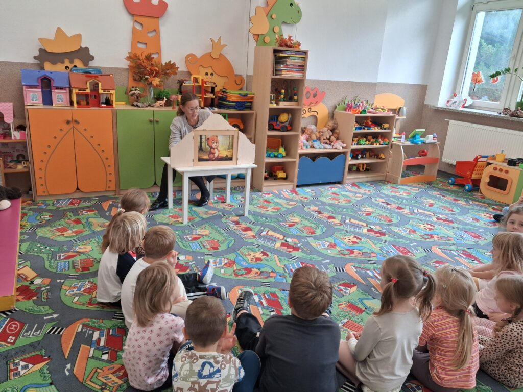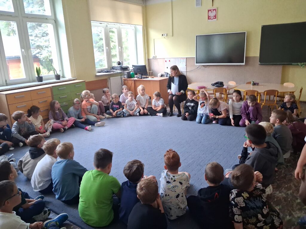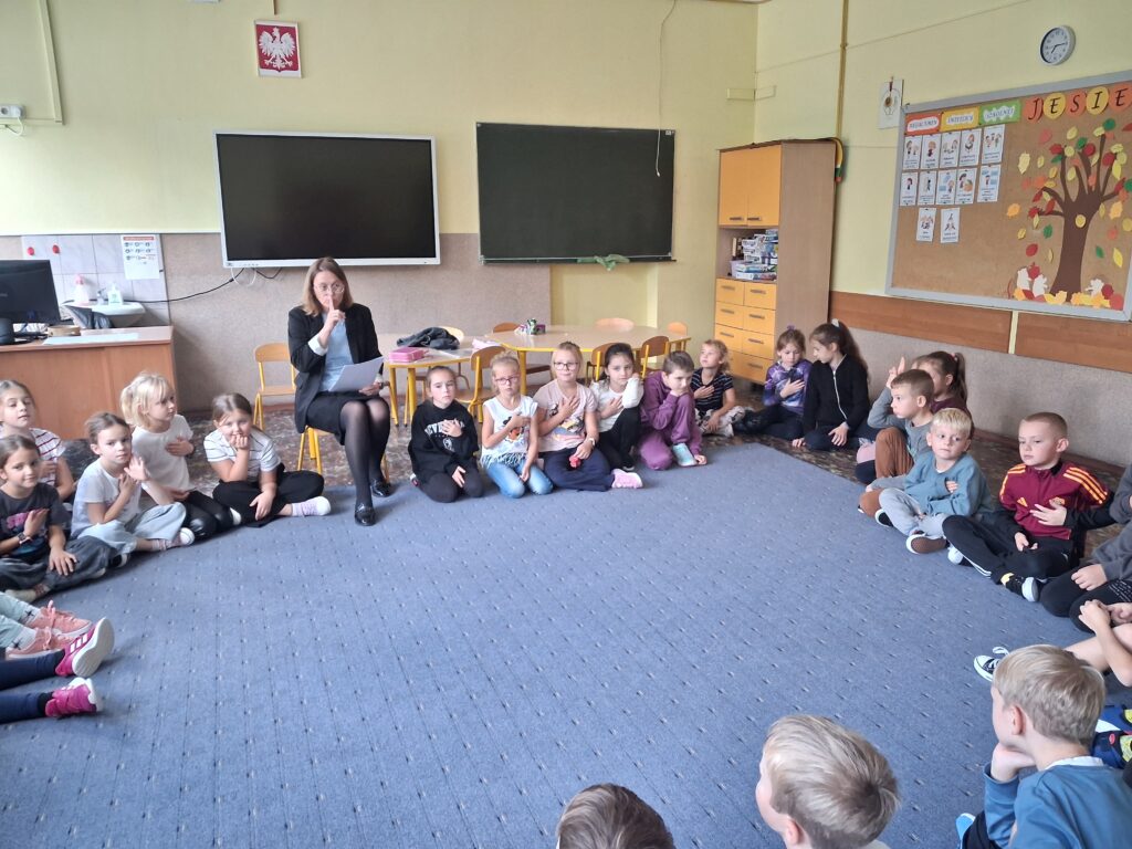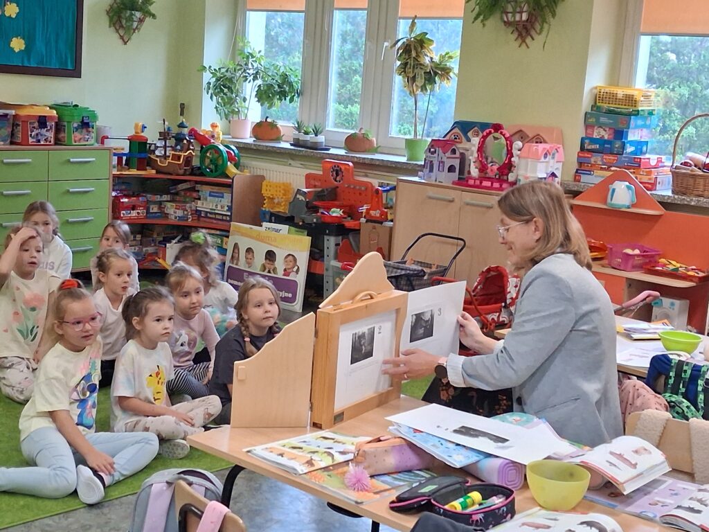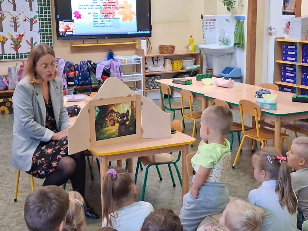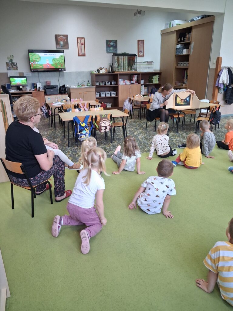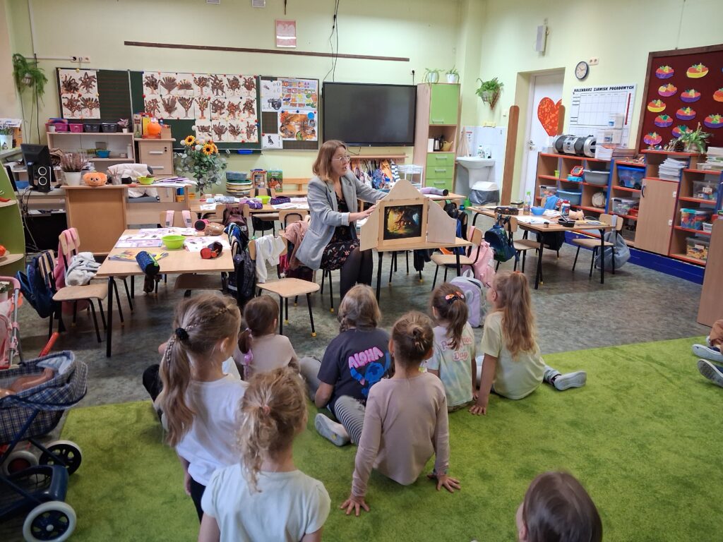 Uczniowie klas 0 i przedszkolaki mieli możliwość obejrzenia teatrzyku Kamishibai pt. „Serce Misia”.