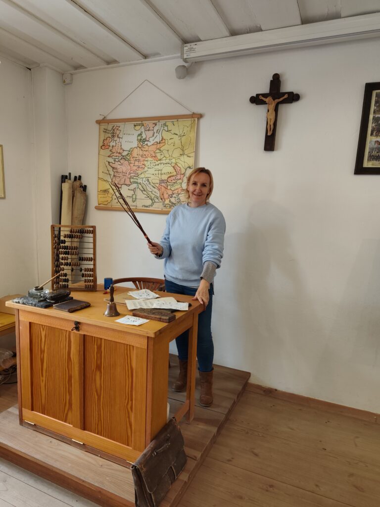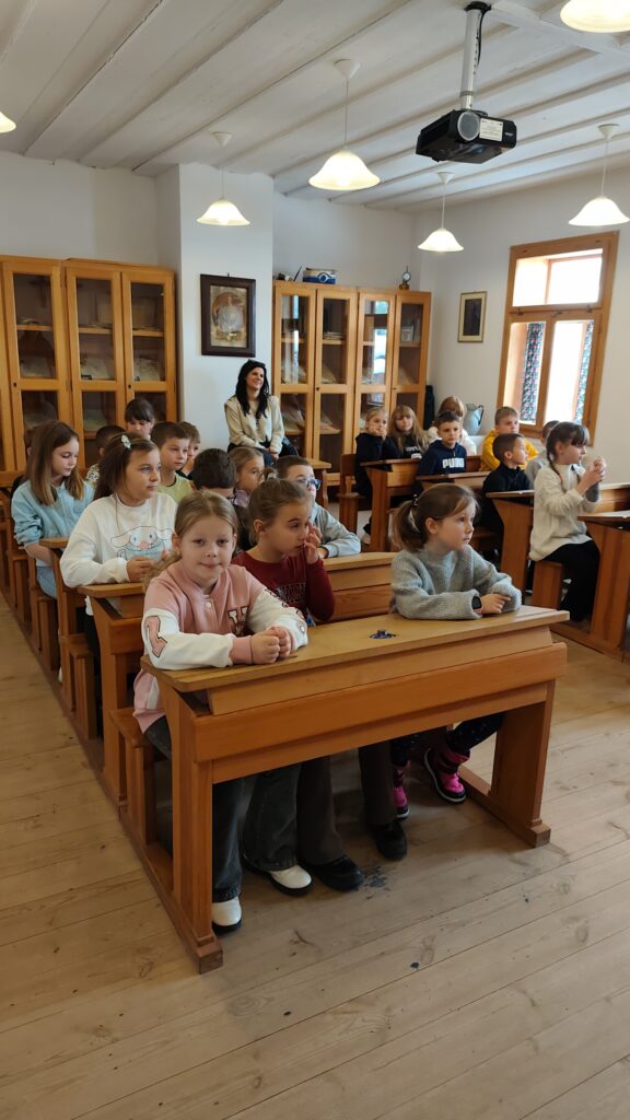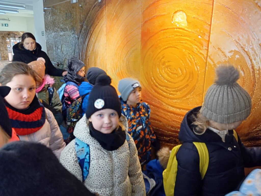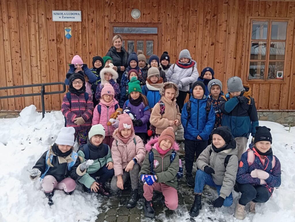 Pierwszym punktem programu było zwiedzanie Szkoły Ludowej w Żarnowcu. Dzieci brały udział w