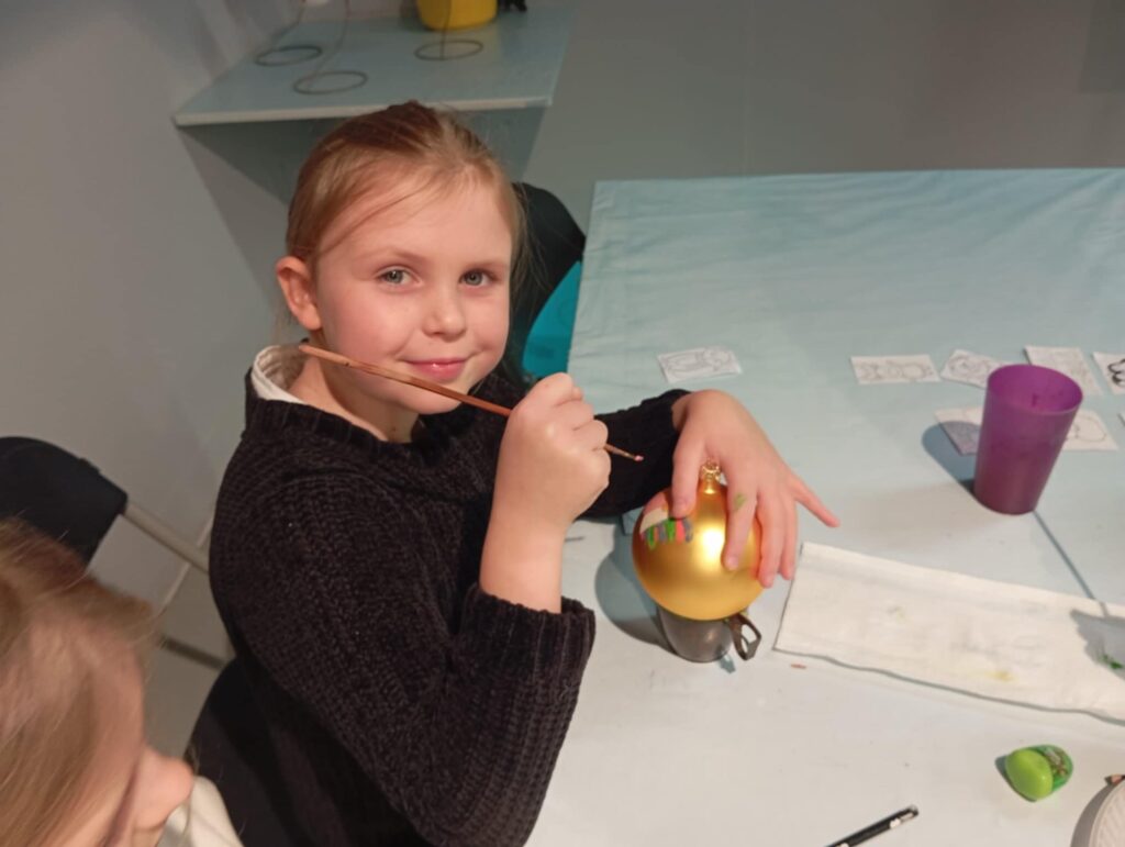 zdobiły bombki choinkowe. Na zakończenie pobytu w CDS uczestnicy dokonali zakupu szklanych