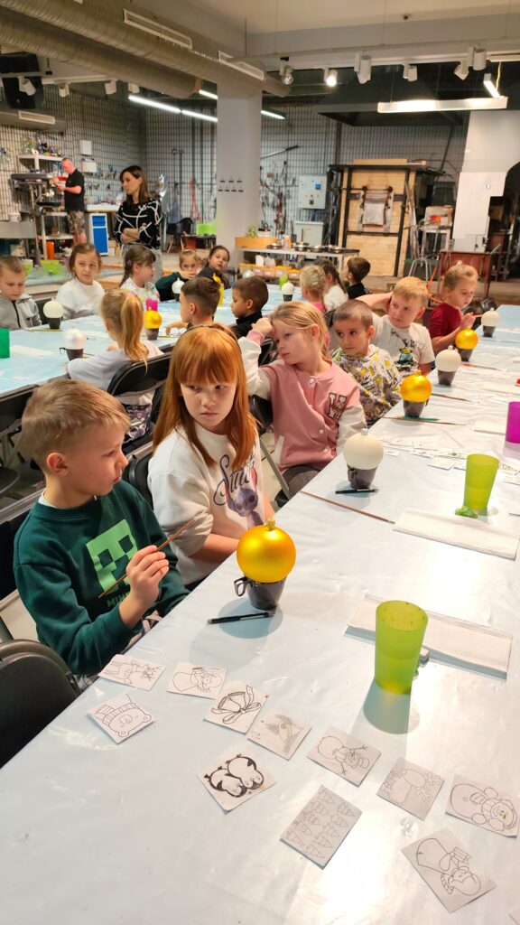 obserwować z czego i jak powstaje szkło. Na ich oczach powstała piękna świnka – skarbonka. Tutaj