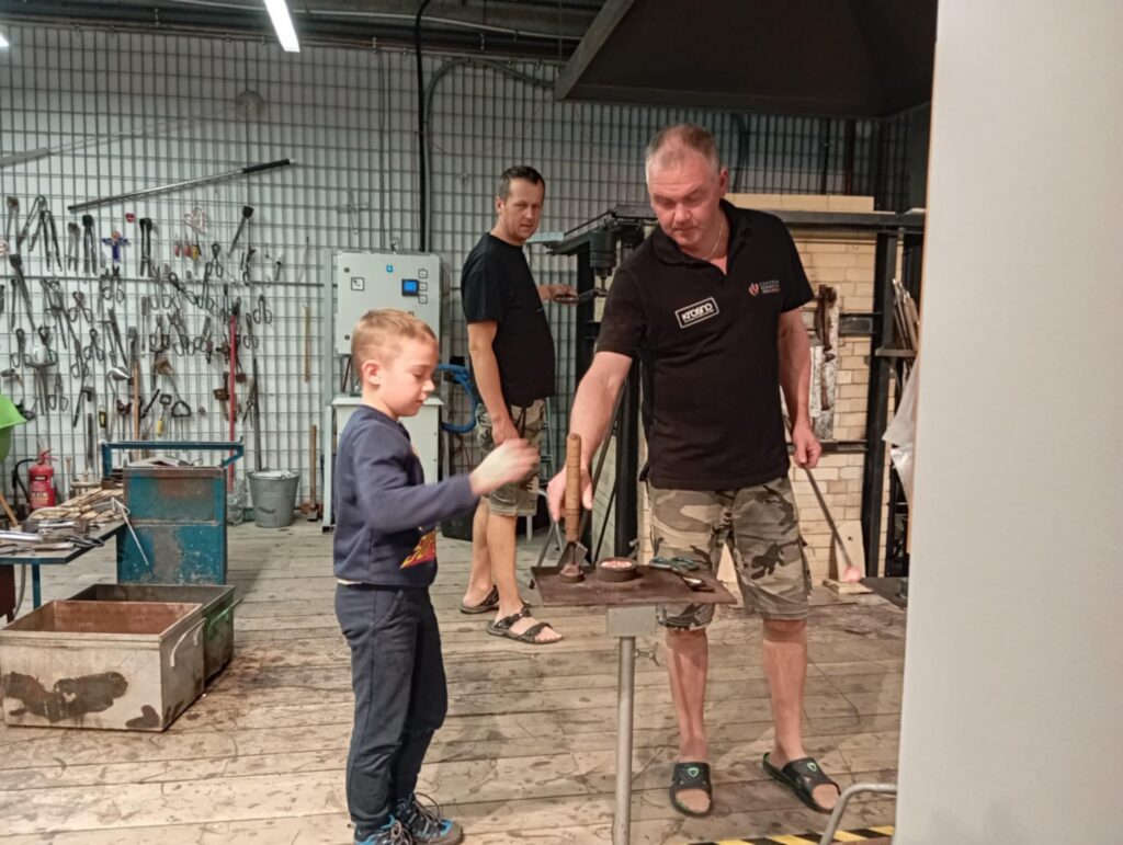 na najniższe piętro muzeum, gdzie znajduje się wielki piec hutniczy. Tutaj z bliska dzieci mogły