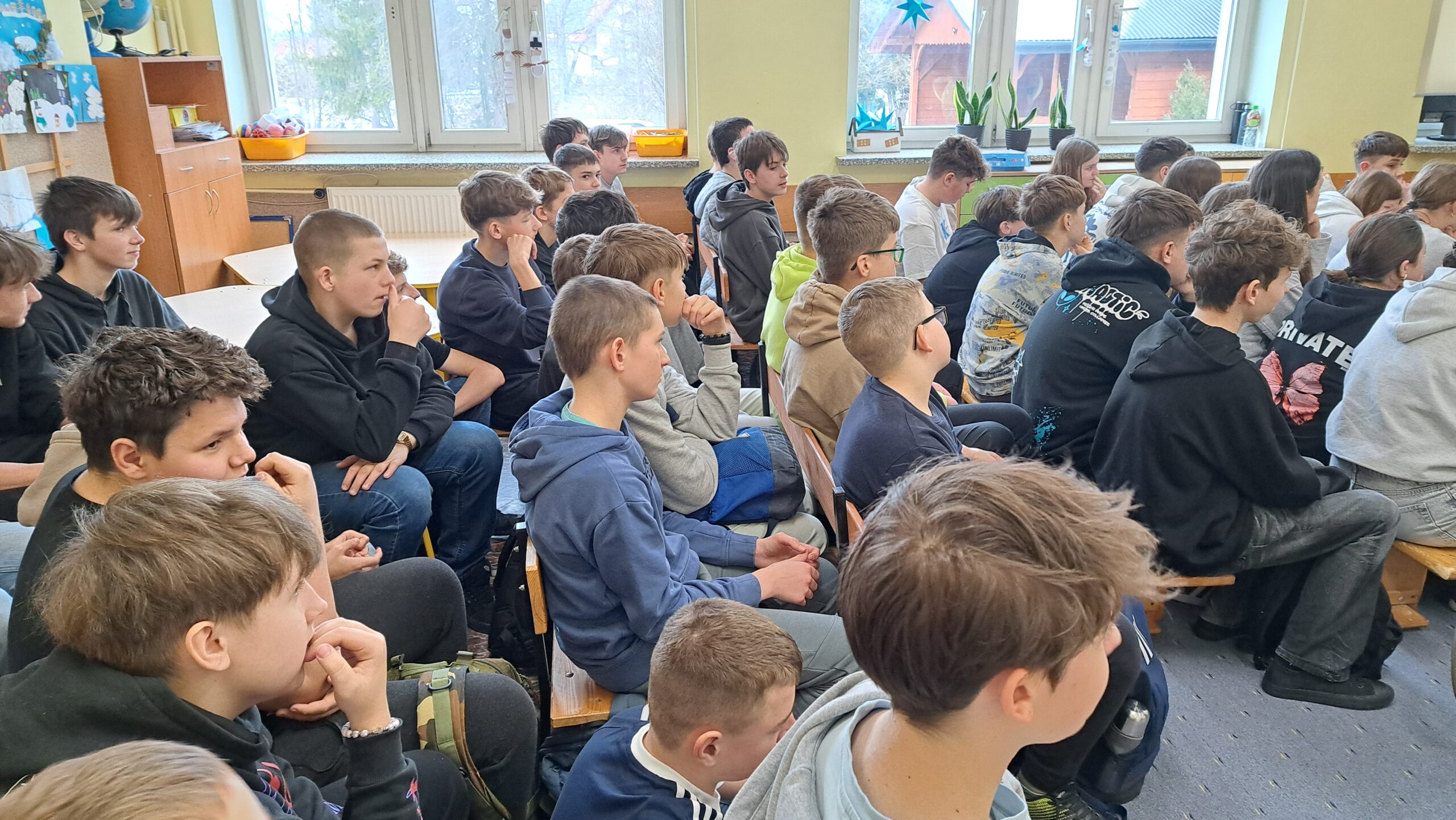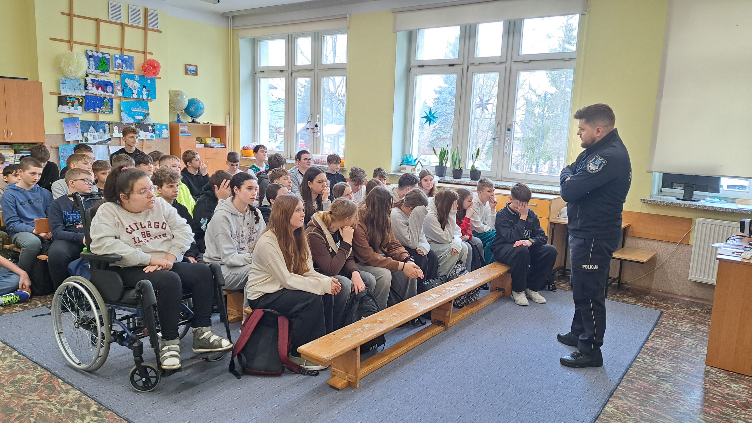 W dniu 18 02.2026r.  funkcjonariusze  Komendy Miejskiej Policji w Nowym Sączu przeprowadzili  prelekcję profilaktyczną dla uczniów klas I–VIII.