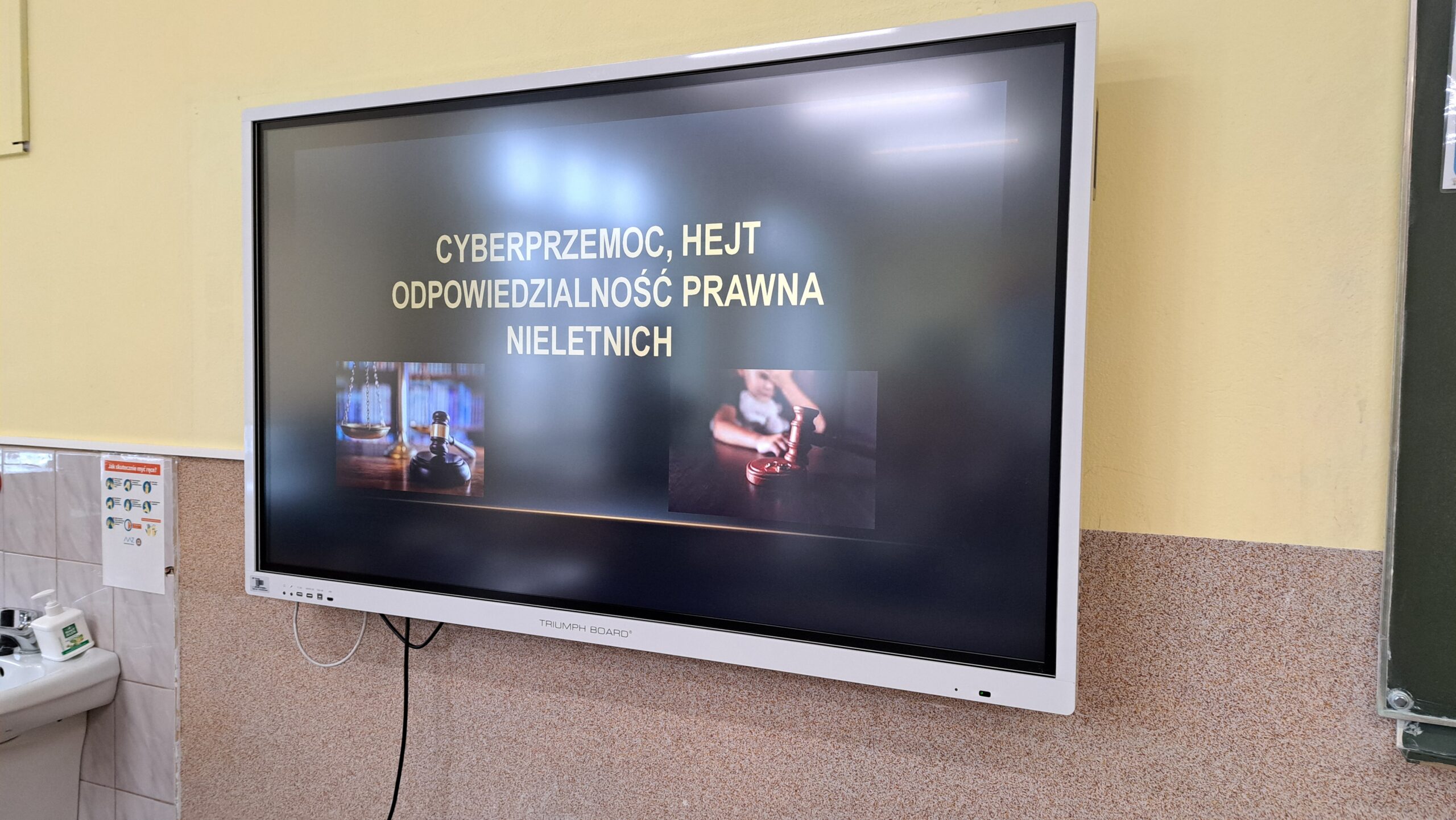 Spotkanie poświęcone było  kluczowym zagadnieniom – takim jak ogólne zasady  bezpieczeństwa, zagrożenia związane z cyberprzemocą oraz kwestia odpowiedzialności prawnej nieletnich. Wiedza przekazana przez policjantów z KMP w Nowym Sączu stanowi nieocenione wsparcie w procesie wychowawczym naszej szkoły. Uczniowie zyskali świadomość jak unikać zagrożeń w świecie cyfrowym oraz jakie konsekwencje wiążą się z nieprzestrzeganiem prawa. Wierzymy, że ta lekcja odpowiedzialności realnie wpłynie na ich bezpieczeństwo w codziennym życiu.