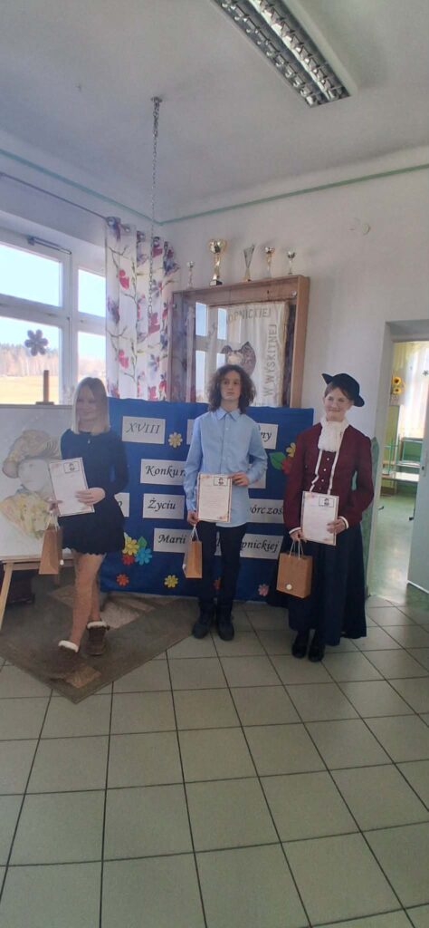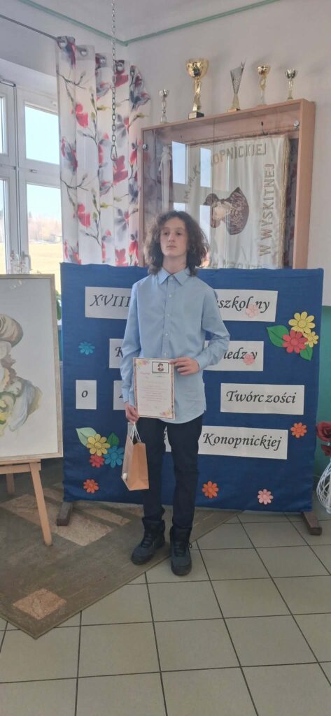4 marca 2026 r Bartek Góra reprezentował szkołę w XVIII MIĘDZYSZKOLNYM KONKURSIE WIEDZY O ŻYCIU I TWÓRCZOŚCI MARII KONOPNICKIEJ – „Życie i twórczość Marii Konopnickiej – miejsca pamięci w prezentacji  multimedialnej”.