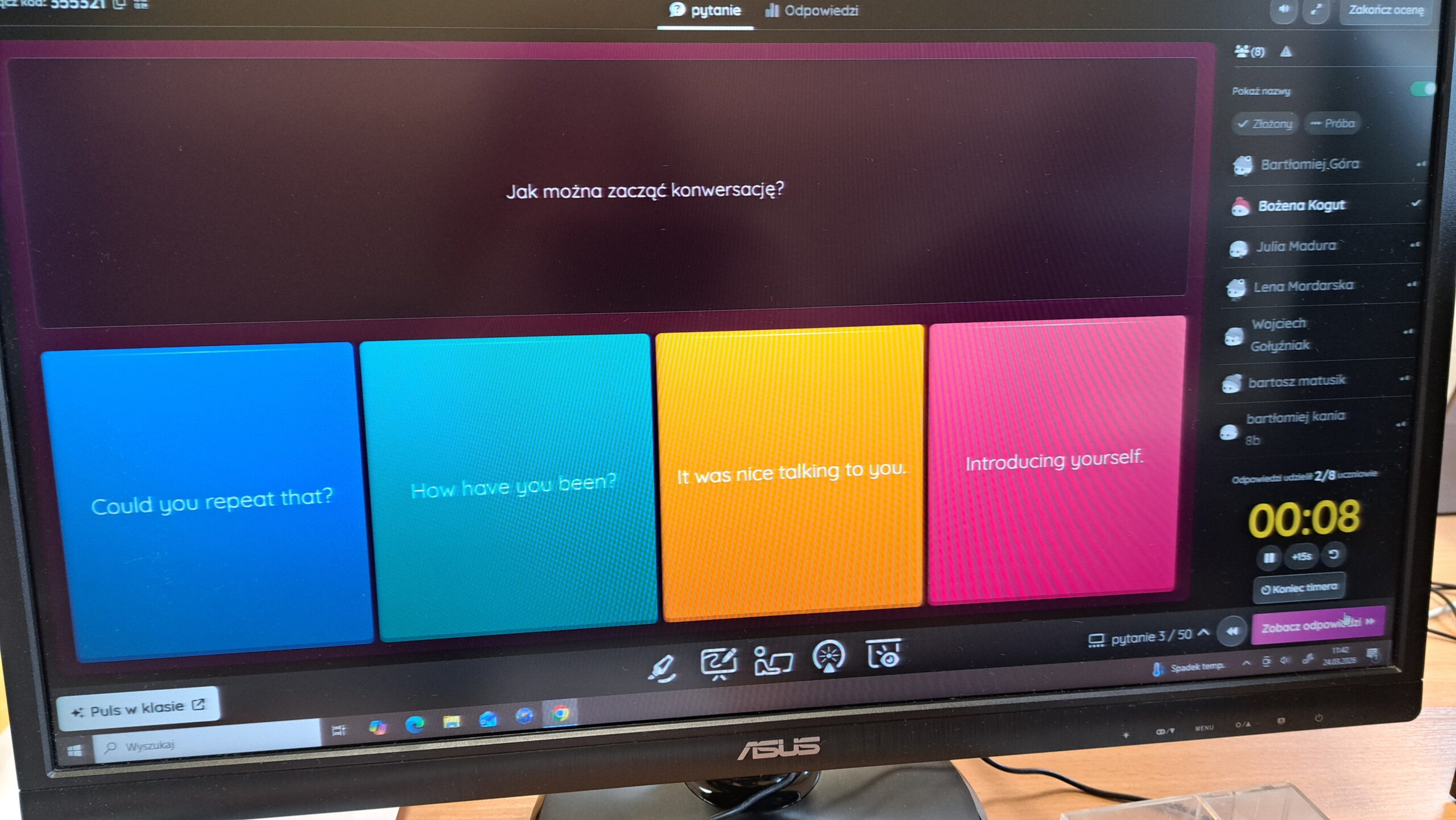 We wtorek, 24. marca, odbyła się szósta edycja Szkolnego Konkursu Języka Angielskiego „Get Ready for E8!”. Jak co roku, językowe potyczki cieszyły się dużym zainteresowaniem wśród uczniów klas VII i VIII. Z tego powodu, wśród chętnych, przeprowadzono wstępne eliminacje, które wyłoniły najlepszych uczestników z poszczególnych klas. Łącznie w konkursie wzięło udział 8 odważnych.